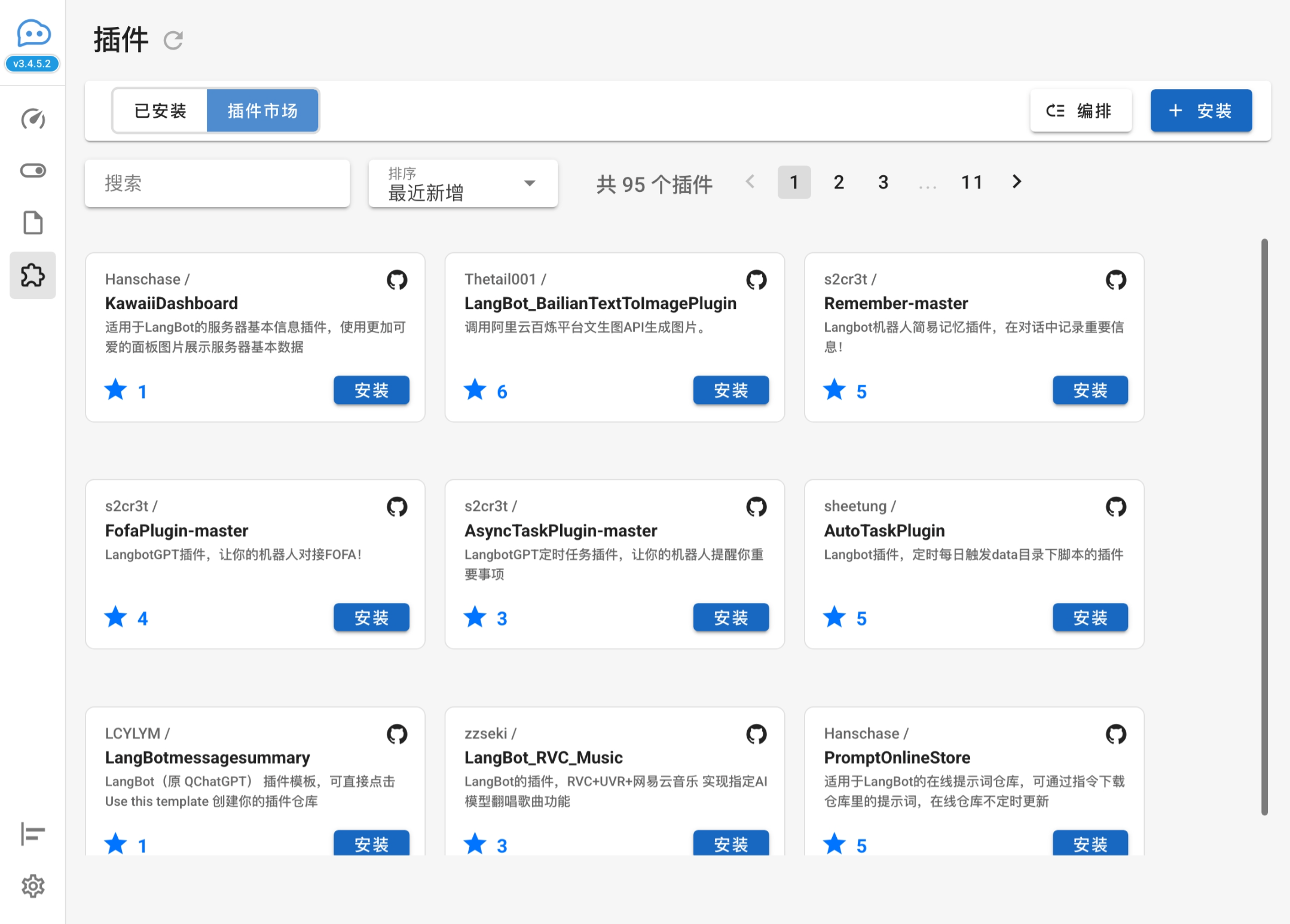 当你的插件开发完成后,请上传到 GitHub,并在 LangBot 仓库提出 issue ,待审核后将会添加到插件市场,约半个小时后会在 LangBot WebUI 插件页的插件市场上可见。